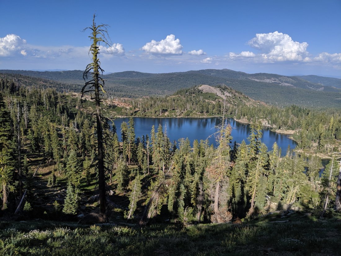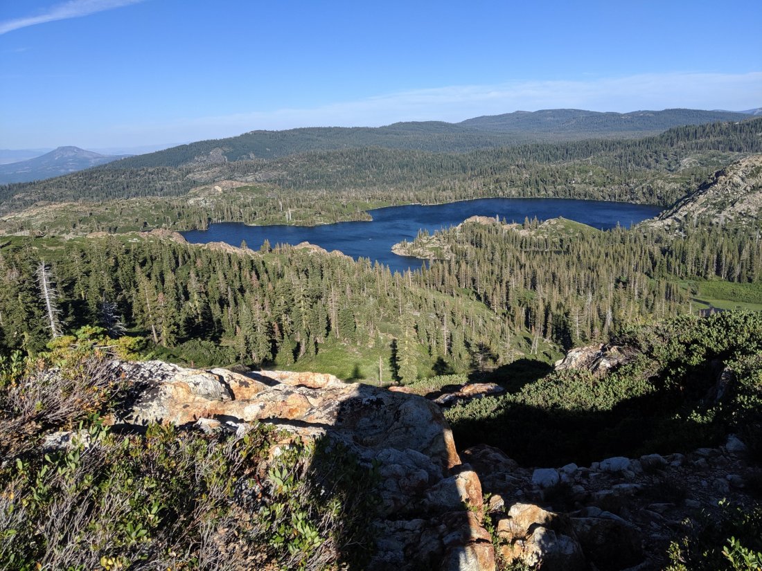 I was on the trail overlooking Donner Lake, famed campsite of the fated Donner Party, by 8:45 am. It’s 57 miles along the PCT from Donner Pass to Salmon Lake Lodge, the Christian family business since 1958, and where I’d planned to take my first days off from hiking since I flipped up to Donner Pass in early July.