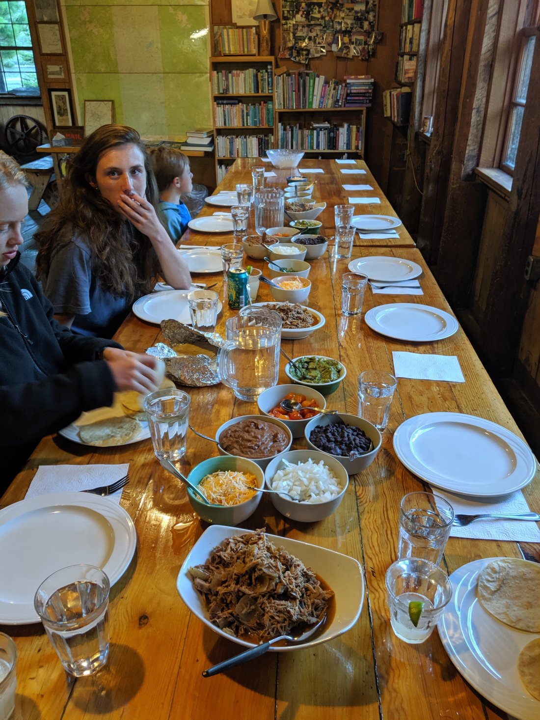 As I was planning my arrival, I remembered that I actually quite like to cook, and have been starved of the experience for quite some time now, so I gave my mother an extensive shopping list so I could get elaborate in the technically-commercial kitchen in the lodge. The first night I made carnitas tacos, complete with pulled pork cooked in a slow cooker and margaritas; the second night I made puy lentil gallettes, a recipe from Yotam Ottolenghi’s vegetarian cookbook Plenty. After three months of cooking with a single pot over a tiny propane tank, it felt really good to be able to stretch out and properly cook, and for a sizeable crowd (c. 15 each night).