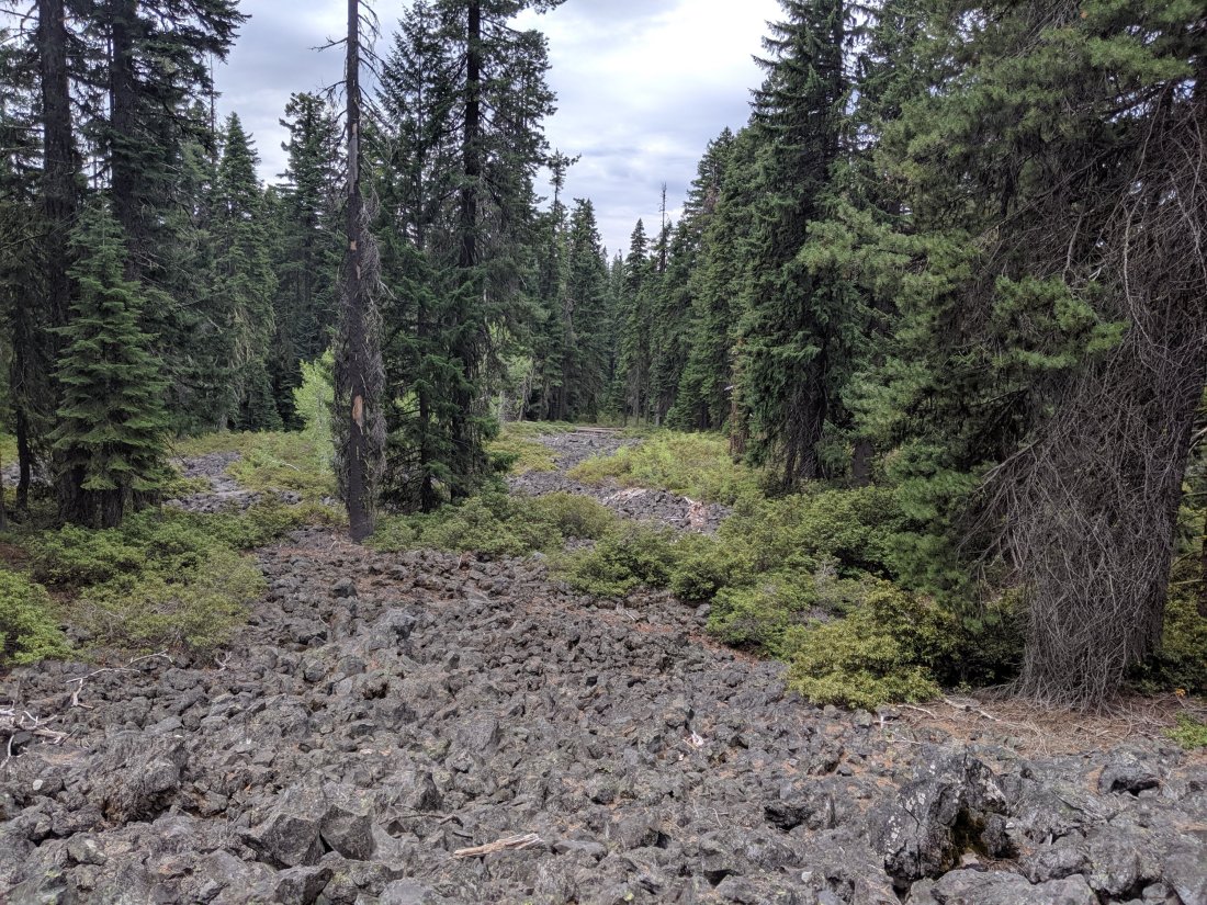 First, while the trail in Oregon has mostly been mild and forested (a “green tunnel”), Day 106 went through a lot of lava fields. It’s pretty cool to see remnants of volcanic activity, but it’s also a lot less gentle on the feet and makes it difficult to keep up a good pace.
