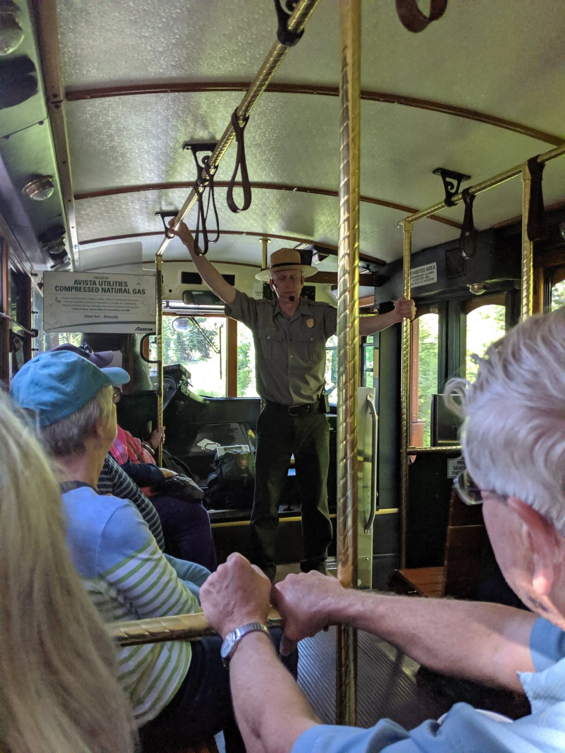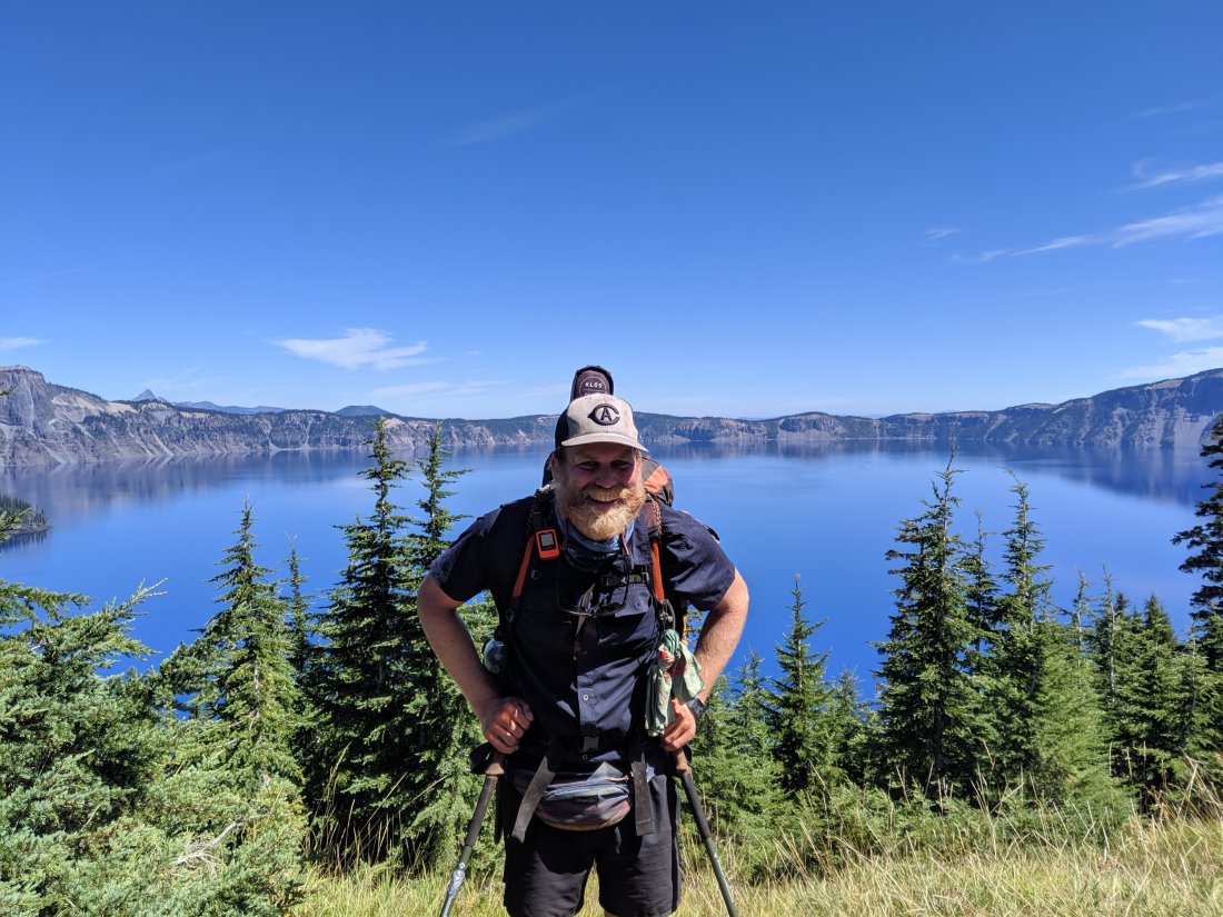 We made it far enough on days 105-107 that we only had 12-13 miles into Crater Lake on Day 108, which we were able to do by noon. We ate lunch and checked out the views of the lake, and then went on a two-hour trolley tour around the perimeter of the lake, led by Ranger Dave, whose spiel was full of really interesting facts about Crater Lake and intermixed with terrible puns he’s clearly told hundreds of times (after snapping a piece of brittle pumice with his hands: “Why can’t you trust the Crater Lake rangers? Because they always break their pumices”).