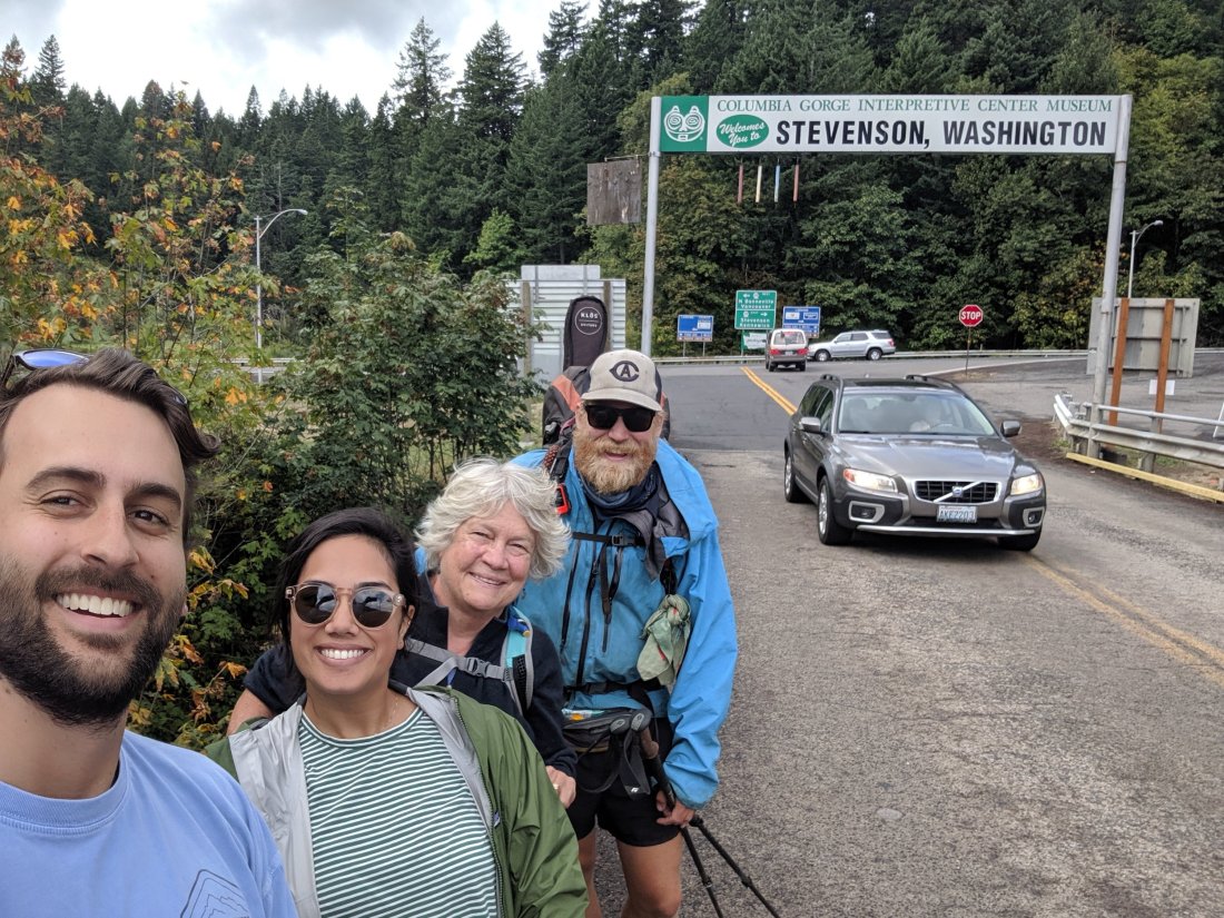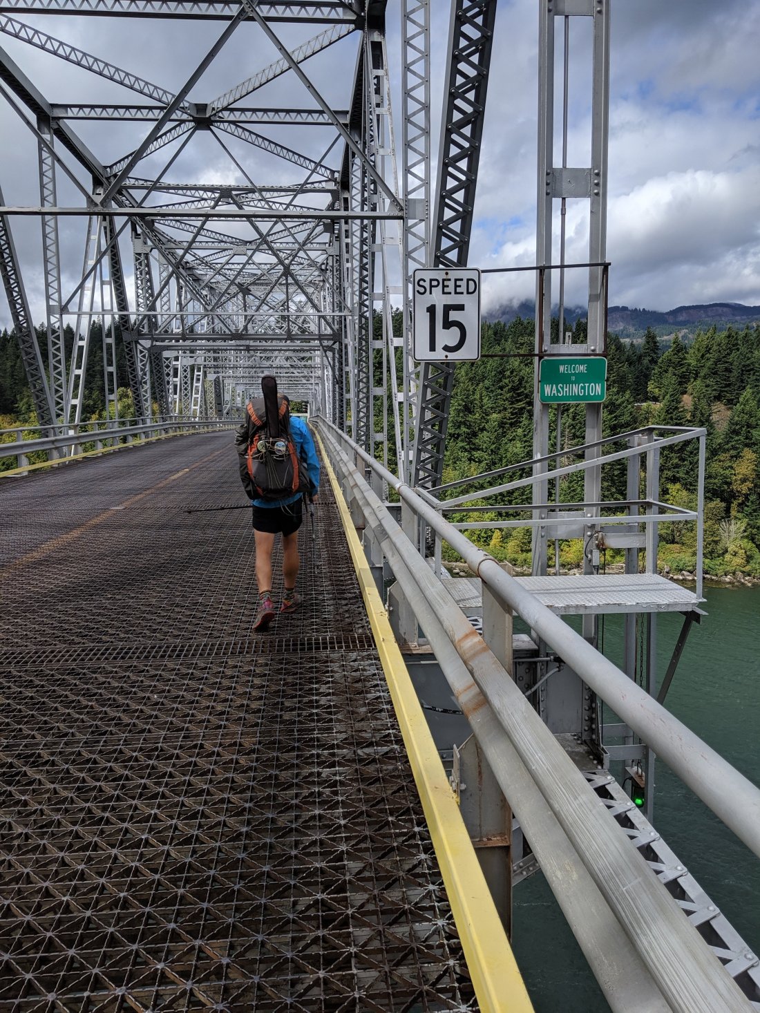 After a quick bit of grocery shopping, which was very limited because Megan and a couple of my friends at the brewery the night before left me with a bunch of stuff, the four of us headed across Bridge of the Gods into Washington. This was my second state line crossing, and definitely much better than California-Oregon, which is just a random spot on the trail marked with a sign. The annoying thing is that the bridge doesn’t have a sidewalk or a shoulder, so cars have to swerve around you. They aren’t going very fast so doesn’t feel unsafe, but it does make it impossible to dilly-dally and properly soak in the moment of crossing the largest Pacific-flowing river in the Americas.