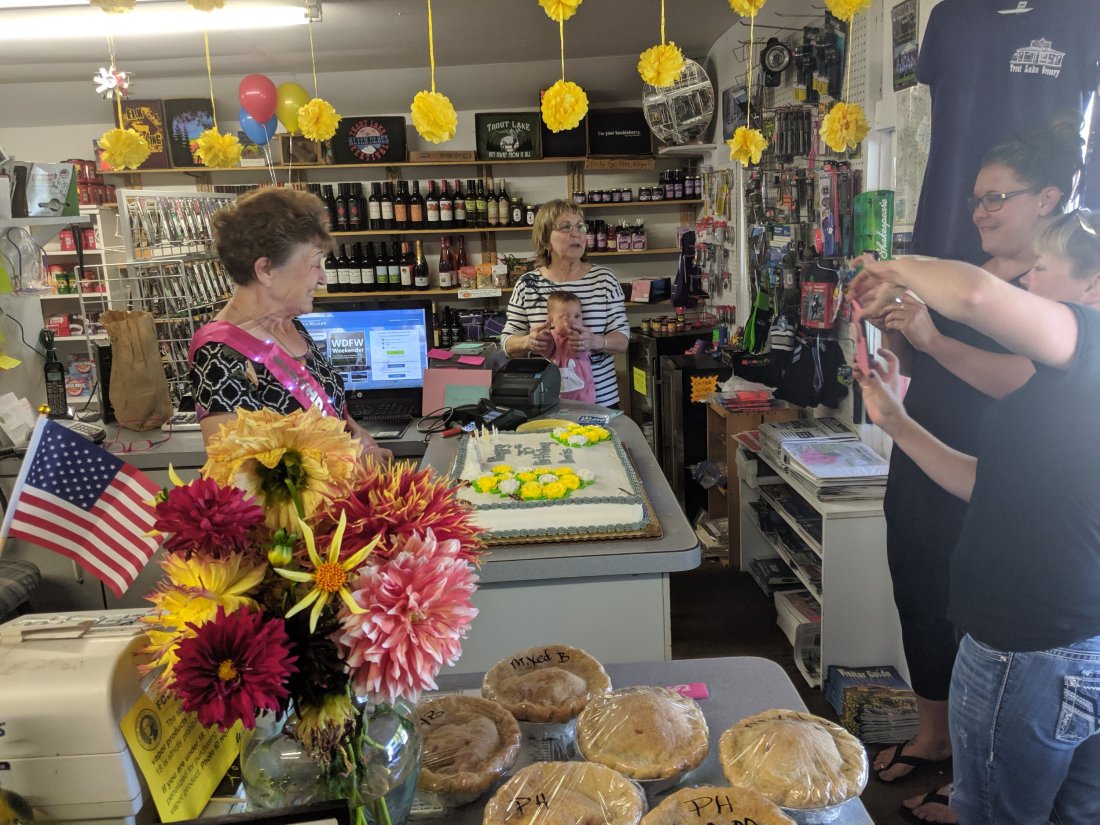 I got to Trout Lake and hung out for the evening in the one-stop restaurant/coffee shop/gas station/repair shop thing, with all the staff seemingly able to switch between being a waiter and a mechanic at a moment’s notice. The other building in town is the general store, which was surprisingly well-stocked, including some locally-made cheese which I snagged for the next leg of the journey. I camped that night on the lawn of the general store and, after a lovely breakfast at the cafe and a shower, and celebrating the 75th birthday of Doris (from the general store), I got a ride back out to the trail around noon or 1.